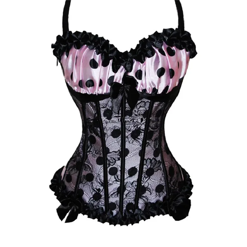 Polka Dots Vintage Corset with Cup Lingerie Zipper Side Straps Overbust Corset Pink Bodice Tops Wais...