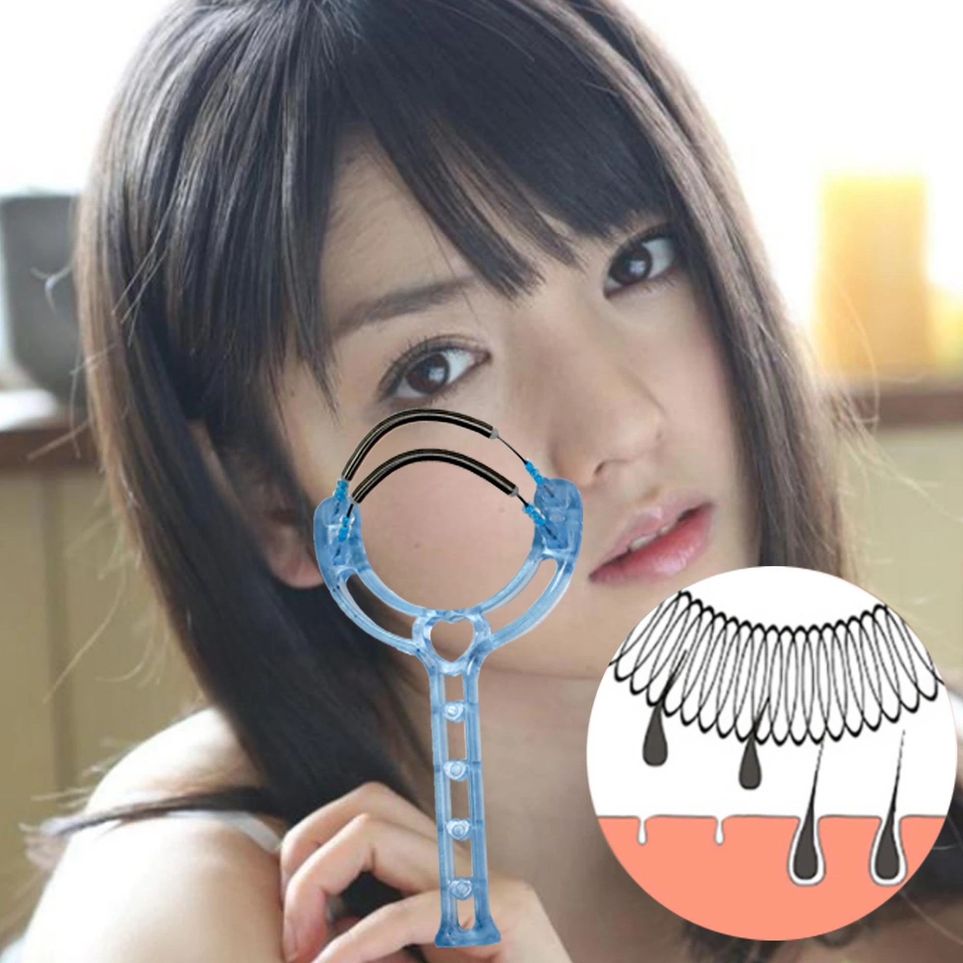 Mini Facial Hair Removal Epilator Spring Threading Tool for Women DIY Eyebrow Cheeks Beauty Makeup D...