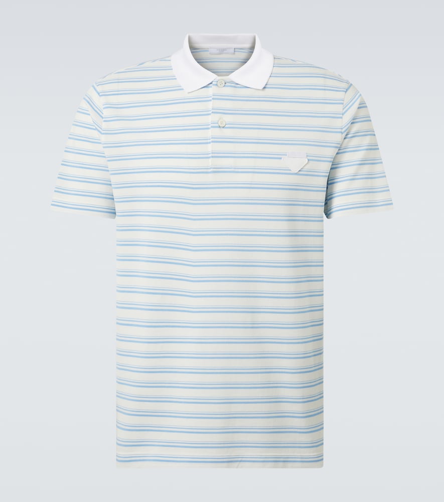 Prada Men, Logo striped cotton polo shirt, Blue, UK 42, Polo shirts