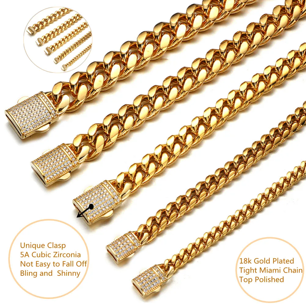 Granny Chic 6-14mm Gold Tone Stainless Steel Men's Miami Cuban Link Chain 7-40inch