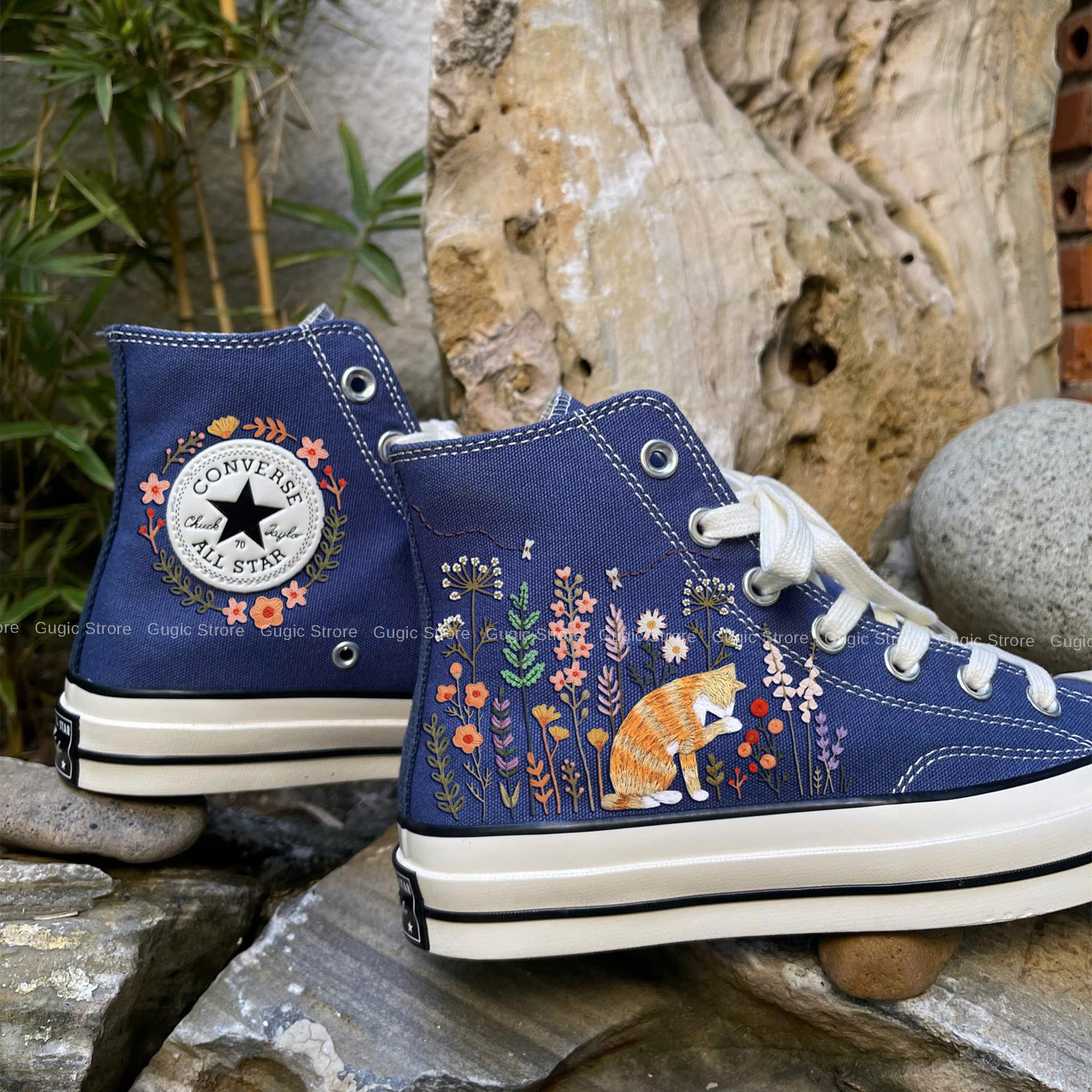 Cottagecore Cat Converse Embroidered, Hand Embroidered Converse Tab...