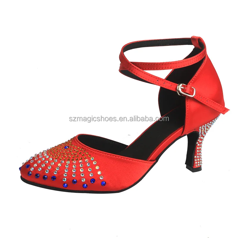 Women Party Dance Shoes Satin Shining Rhinestones Soft Bottom Latin...
