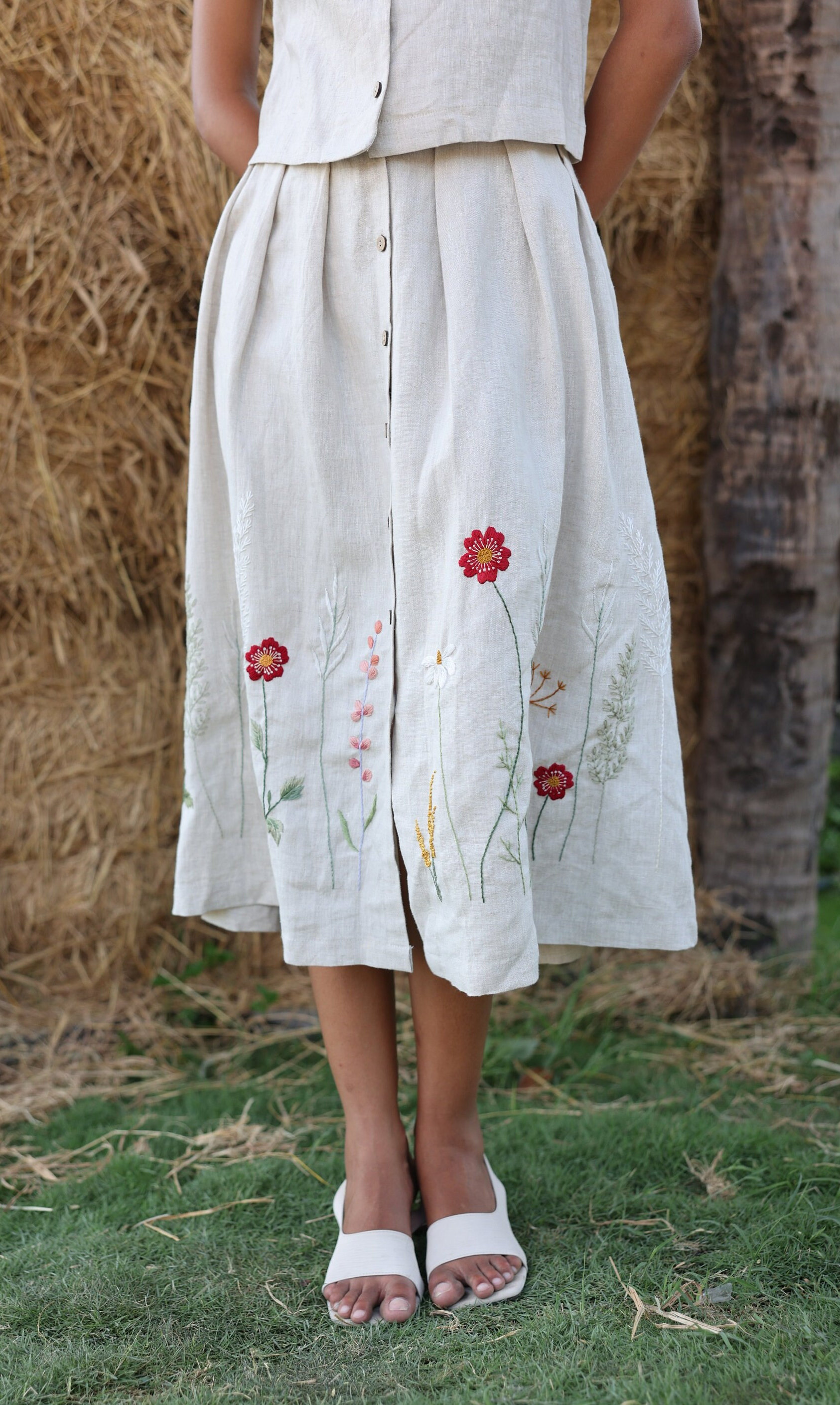 Embroidered midi skirt MIA, Linen pleated skirt, Maxi skirt boho, V...