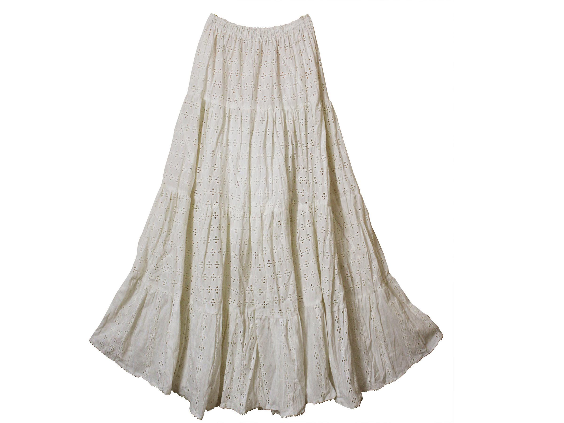 Womens Boho Skirt Floral embroidered Mesh Hem Patch Midi Free Size ...