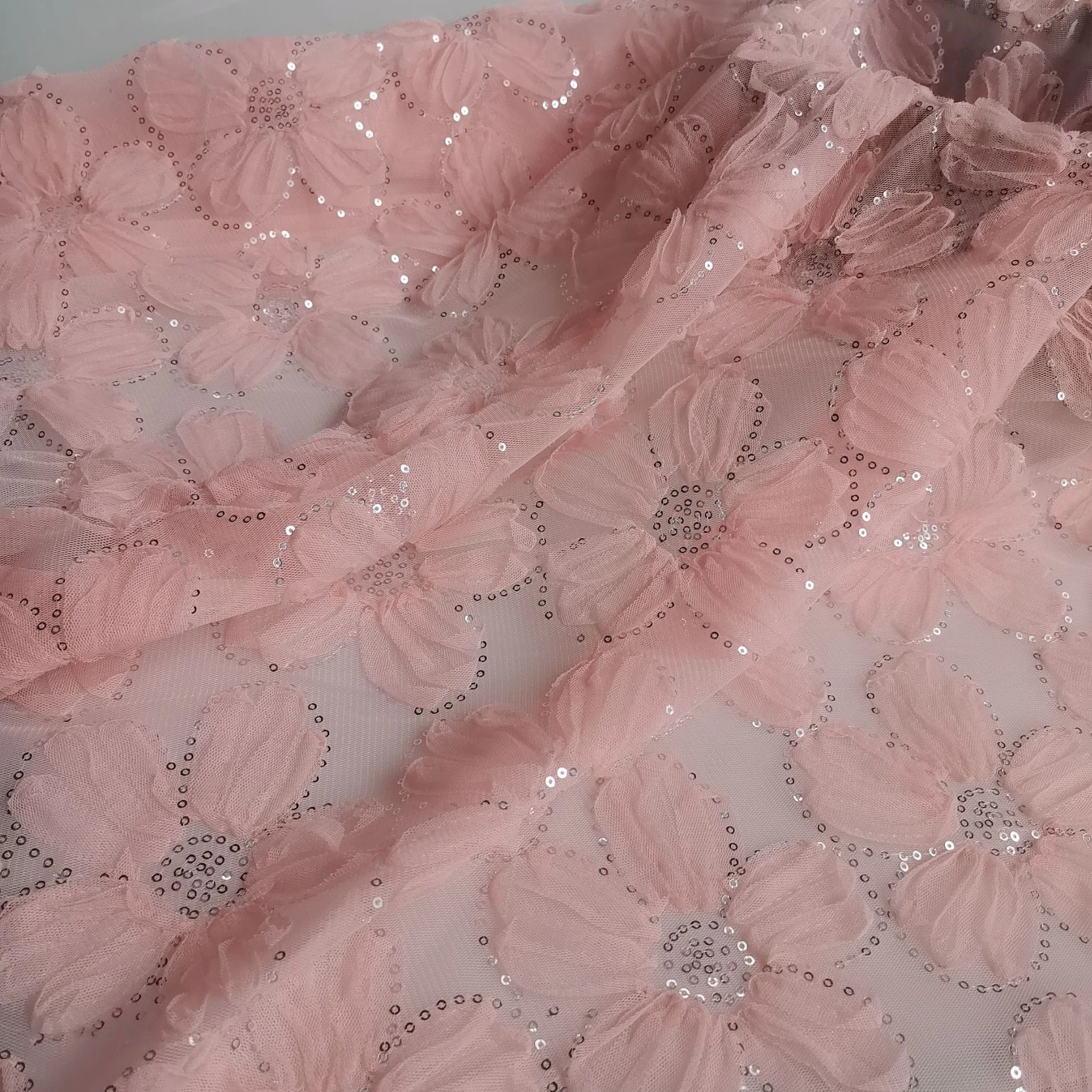130cm New Multi-color Mesh Lace Embroidered Mesh Gauze Three-dimensional Sequin Embroidered Lace Fab...