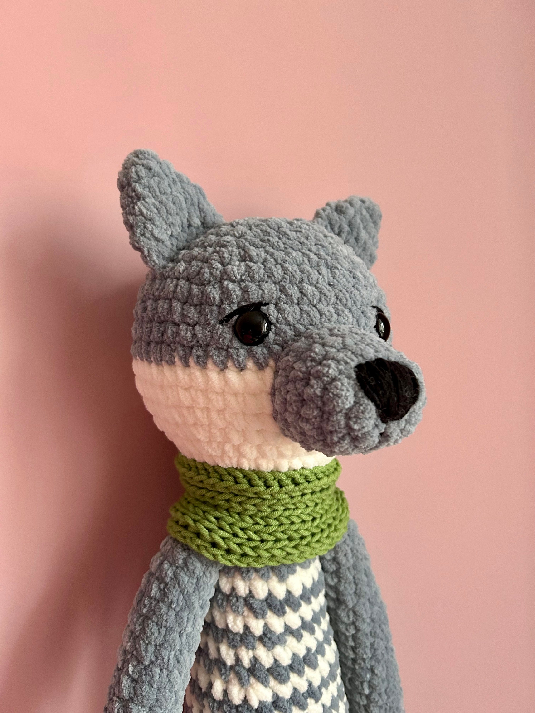 Big velor wolf forest animal/crochet wolf/baby toys/knitted toy/kni...