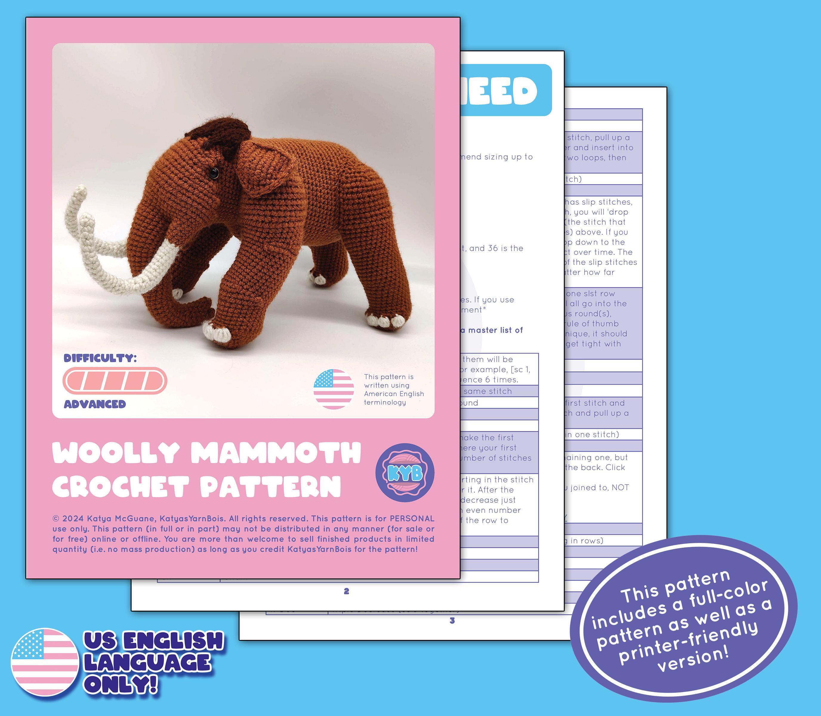 PATTERN | Woolly Mammoth Crochet Plush | Prehistoric Ice Age Mammal...