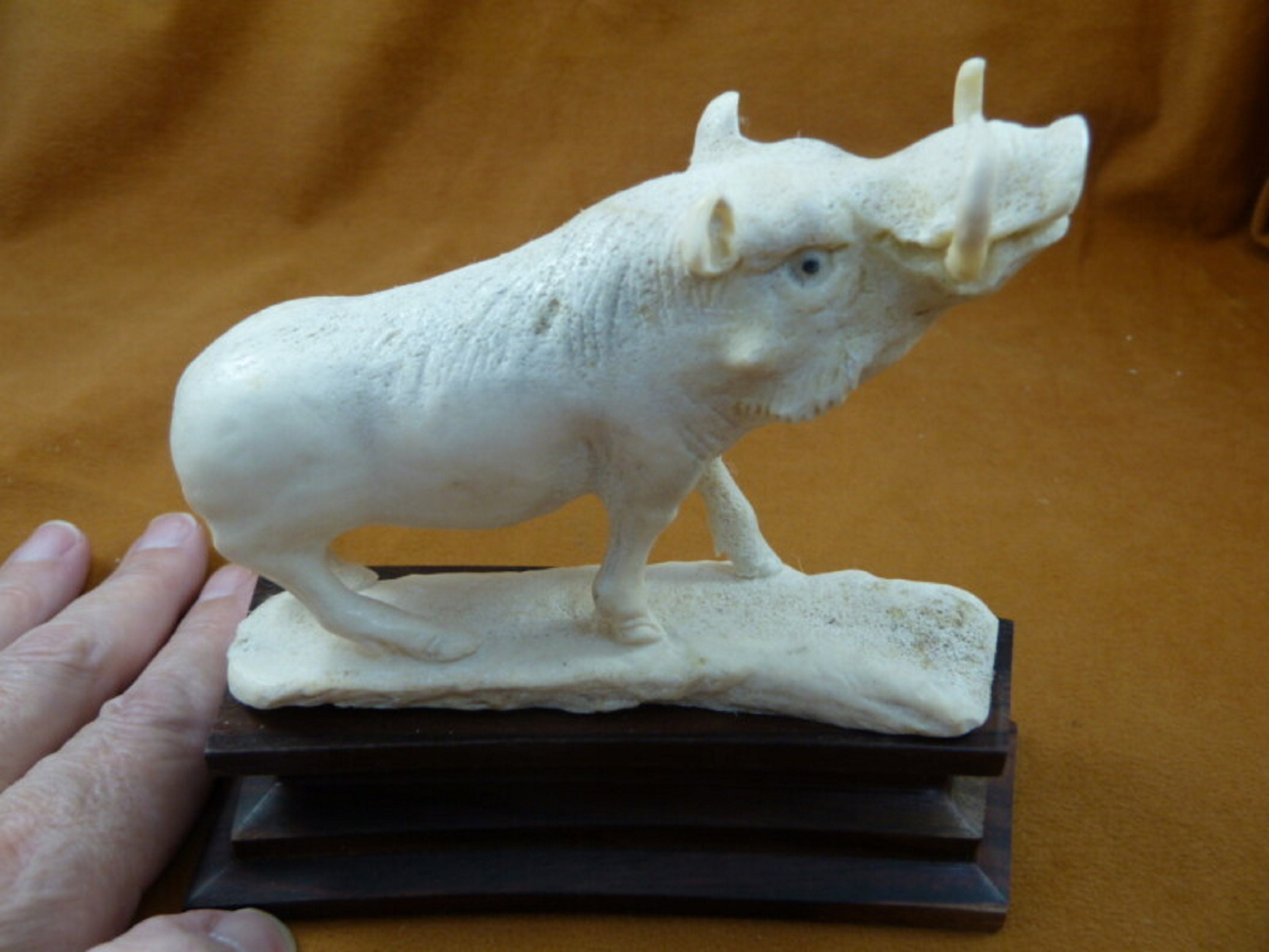 large white Warthog of shed ANTLER figurine Bali detailed carving o...