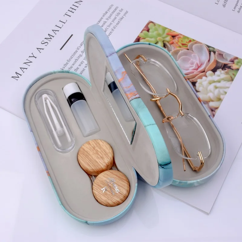 Imitation Wood grain contact lens circle pupil case folding fashion frame glasses case leather glass...