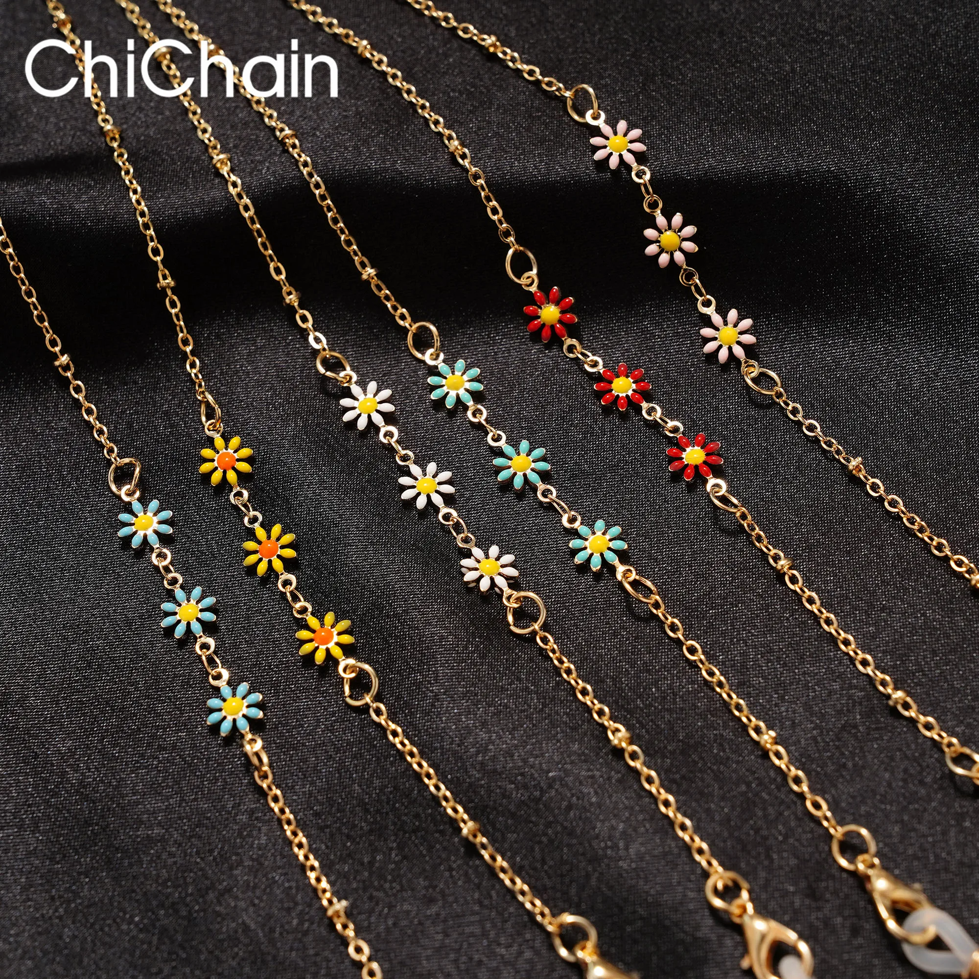 Oil Dripping Chrysanthemum Metal Glasses-chain Mask-rope 2022 New F...