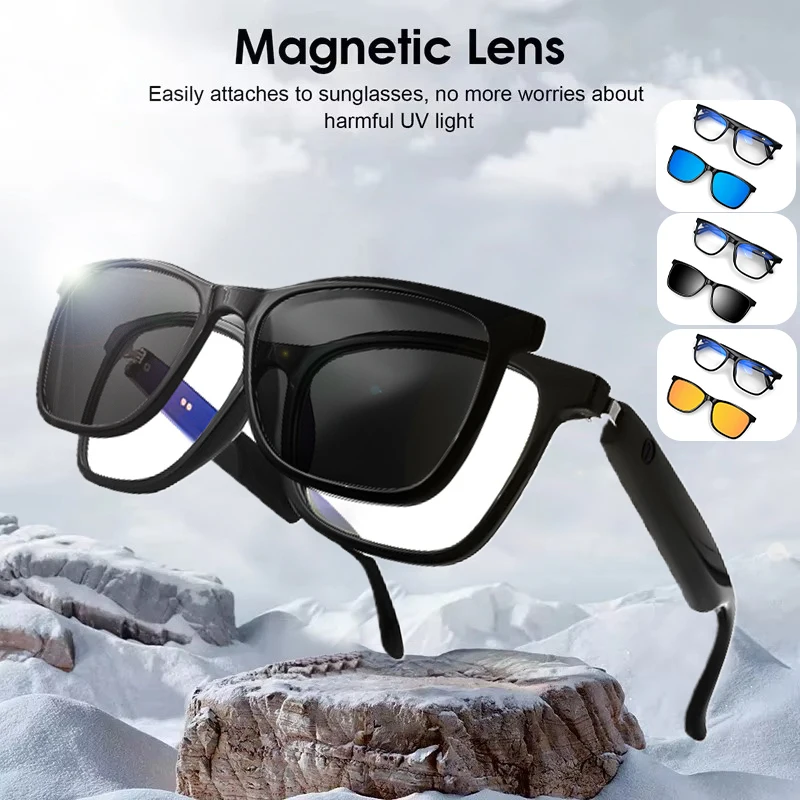 Magnetic Clip Sunglasses for Men Women Polarized Blue Light Blocking Sports Smart Eyeglasses Bluetoo...