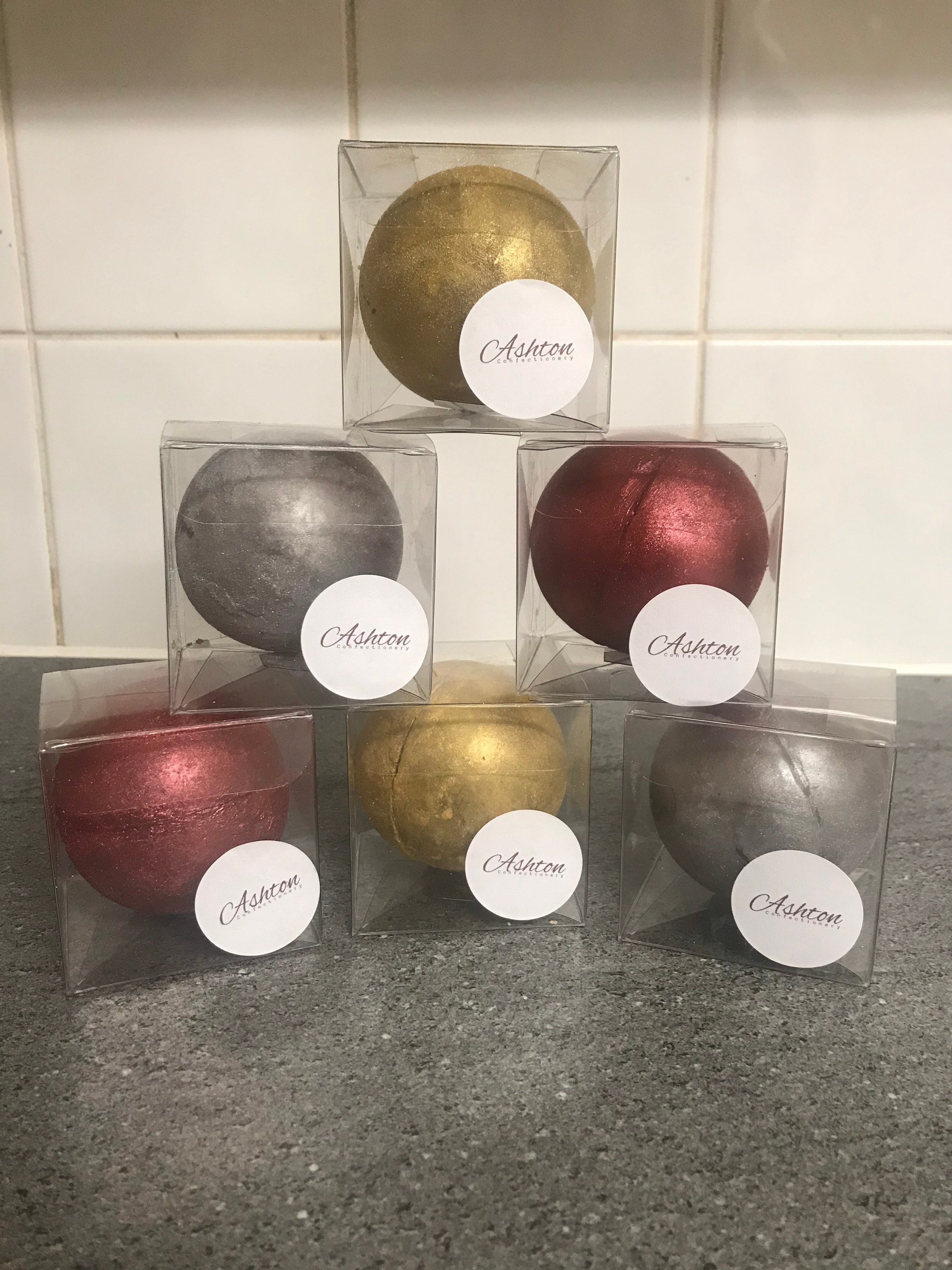Hot chocolate bombes milk chocolate Presented in a clear box with the logo on the front like the pic...