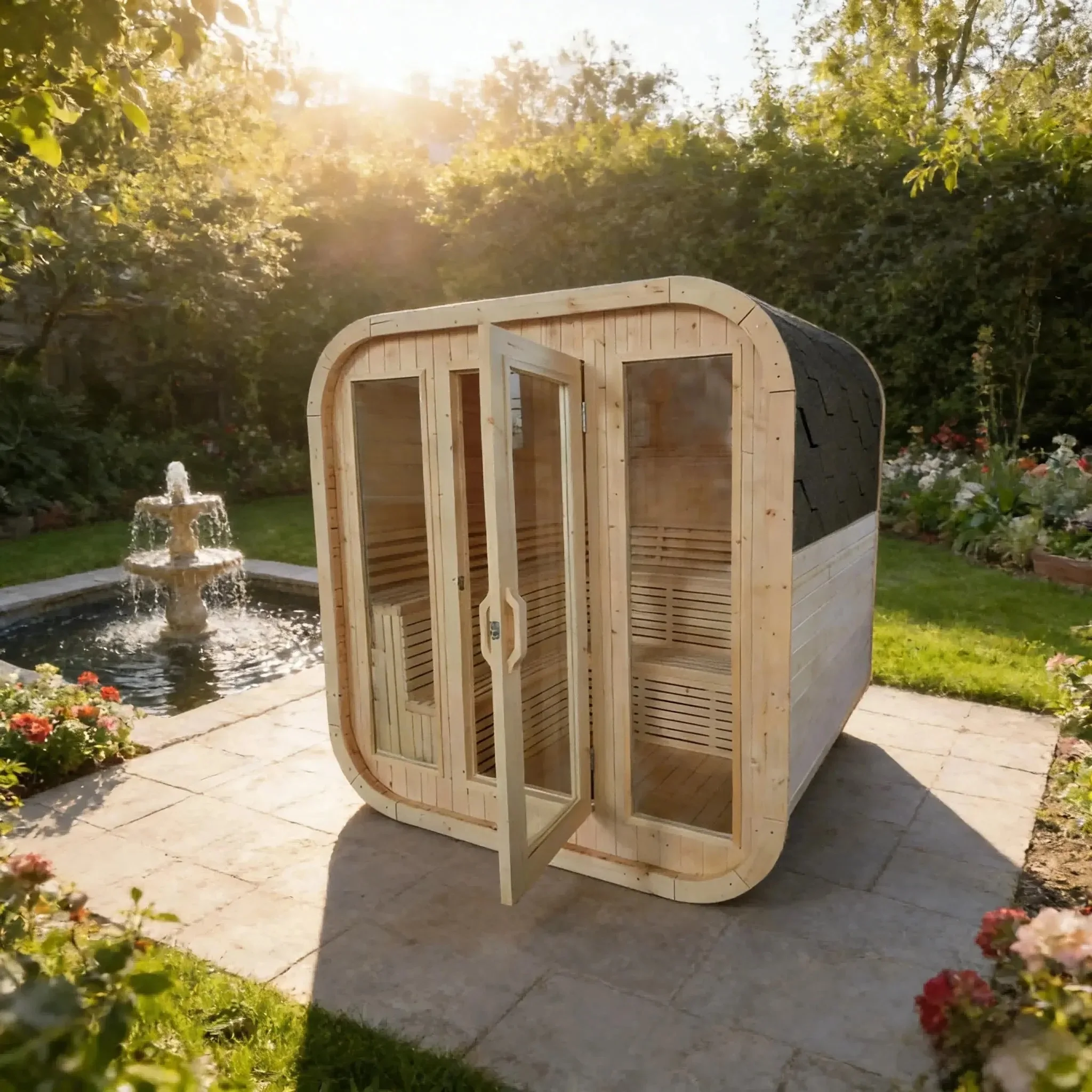 Outdoor White Pine Cube Sauna Room | Garden Finnish Sauna Pod | Wat...