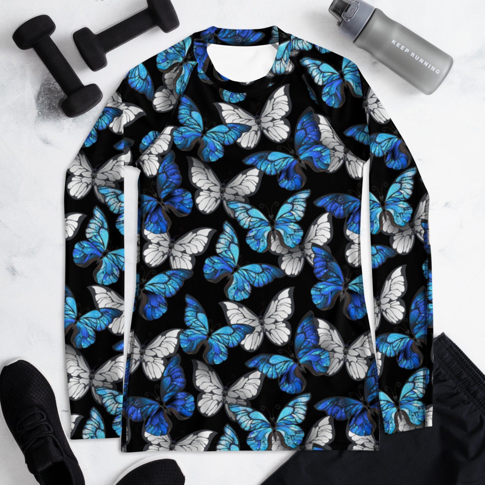 Blue Butterfly Women's Rash Guard - Blue Rash Guard - Butterfly Ras...