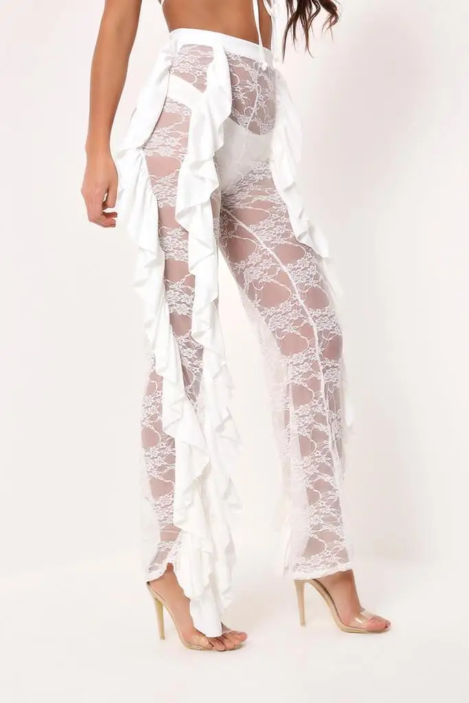 BKLD Sexy Women Beach High Waist Pants New 2025 Ruffles Lace See-through Wide Leg Pants Ladies Sexy ...