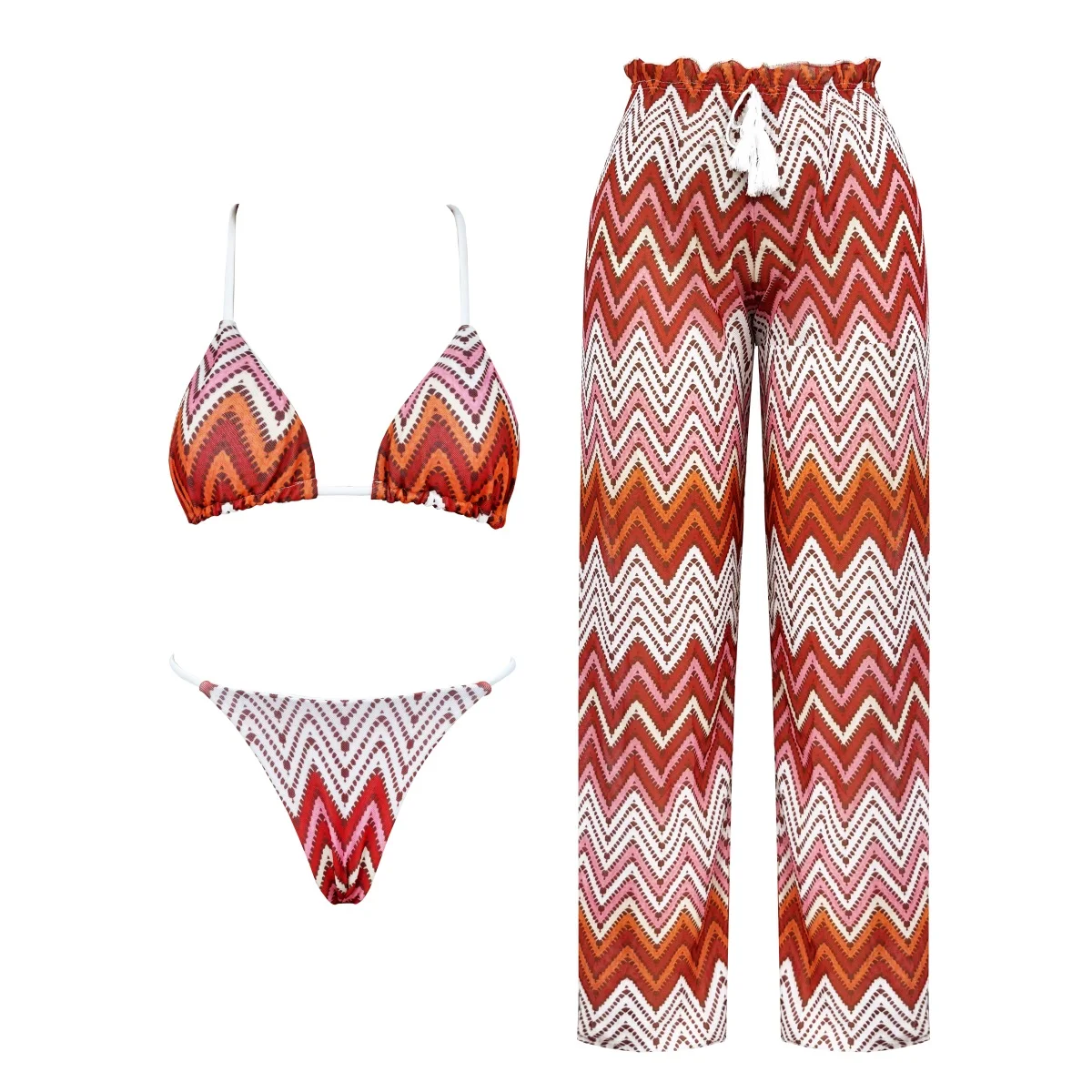 3 Pieces Tie Dye Cross Bikini 2026 Women Sexy Halter Swimsuit & Cover Up Pants Swimwear Bathers ...