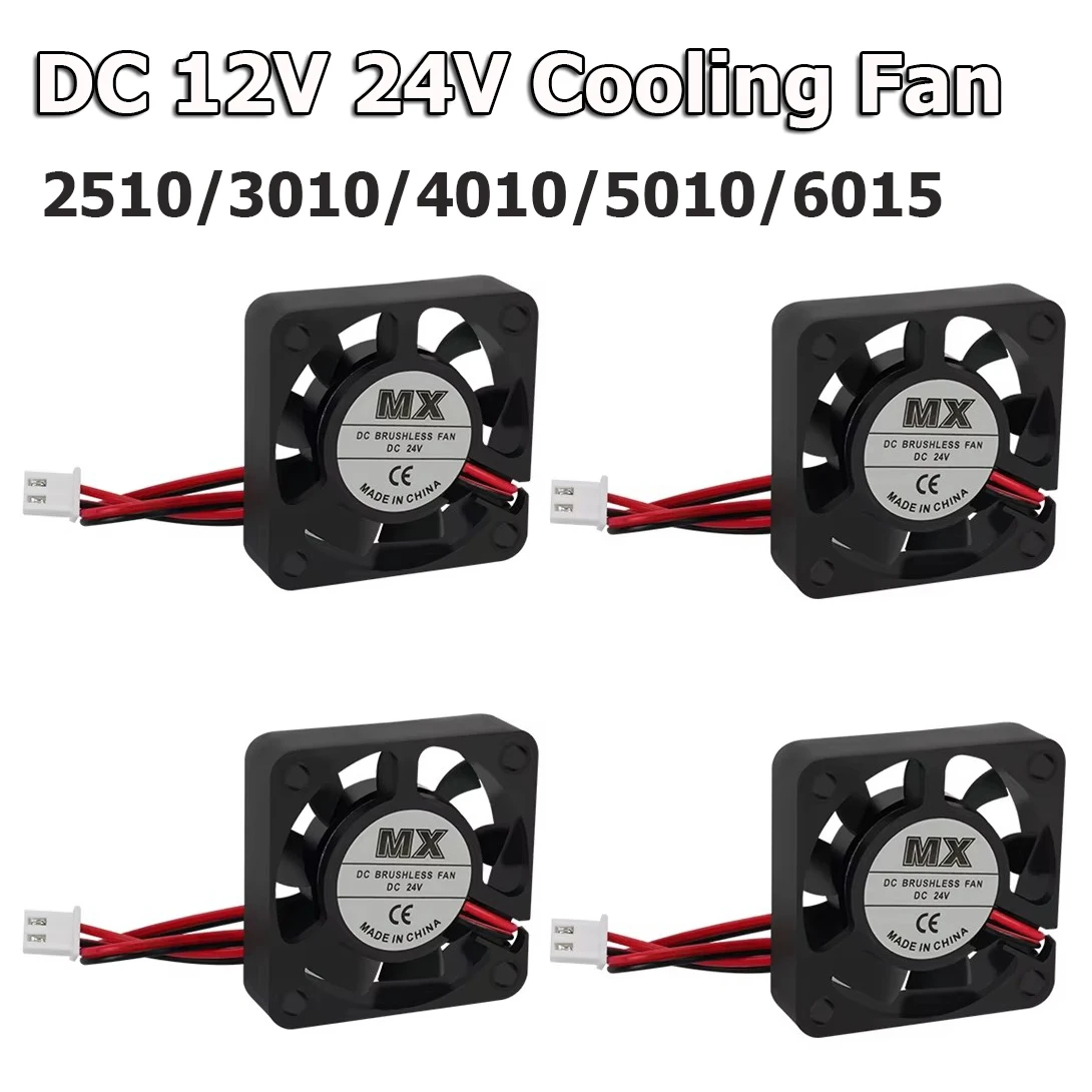 2/4pcs 12V 24V Cooling Fan 2510 3010 4010 5010 6015 Cooler Fan 3D P...