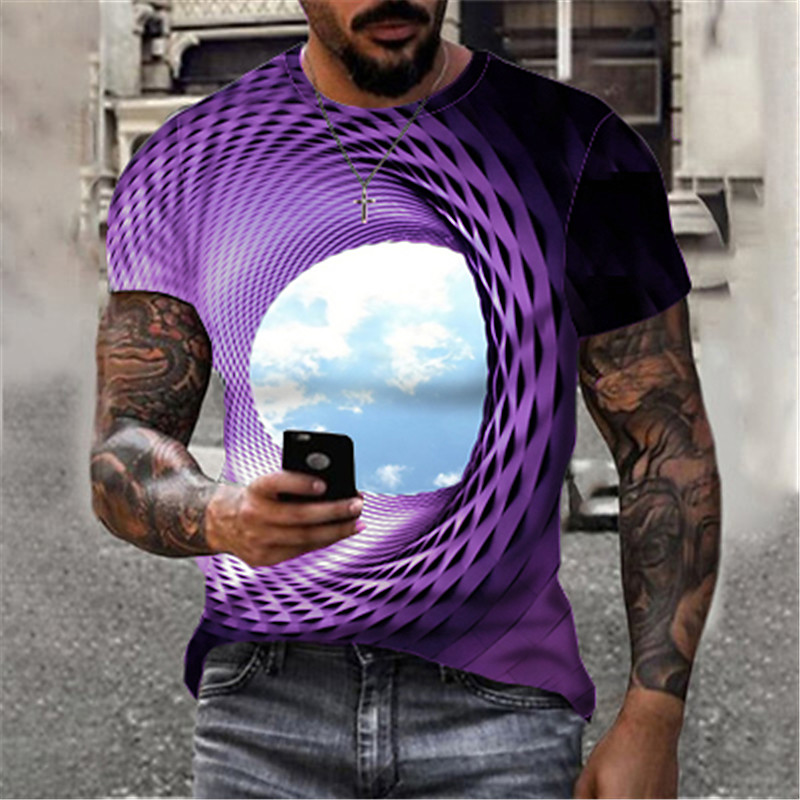 Men's Optical Illusion Clouds T Shirt Short Sleeve T shirt 3D Print...