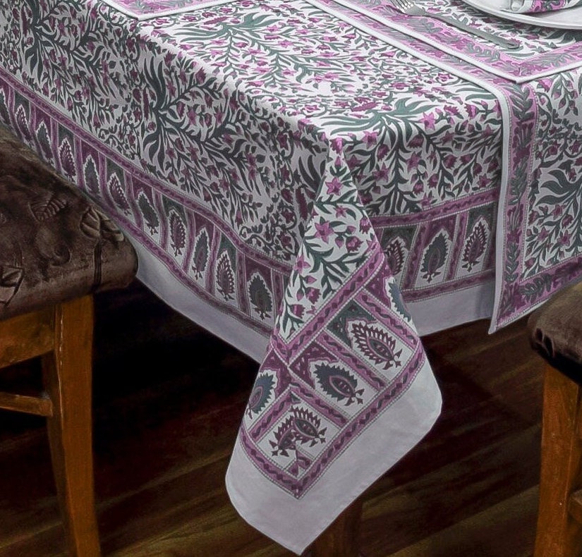 Soft Pink and White Indian Hand Block Printed Cotton Tablecloth, Table cover for Wedding Home Party ...