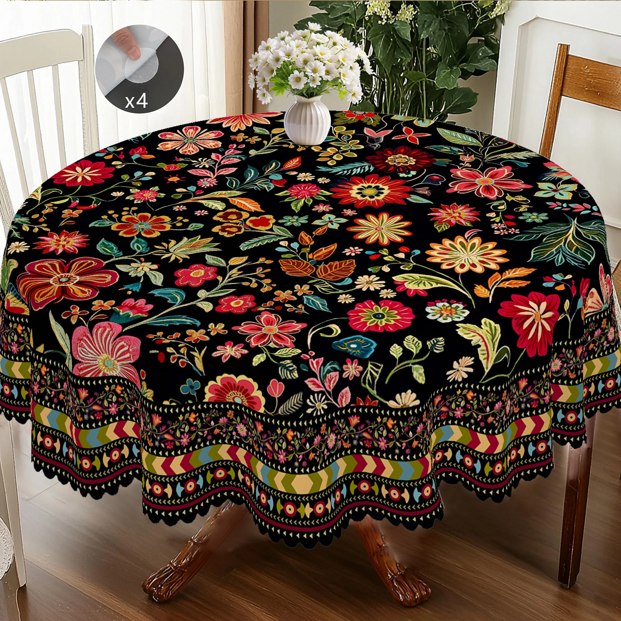 1 Piece of Bohemian Retro Farmhouse Style Tablecloth, Moroccan Country Colorfulful Flower and Stripe...