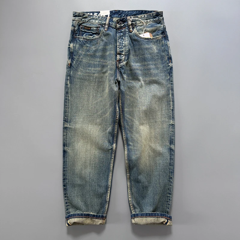 13.5oz Men's Japanese Indigo Blue Selvedge Straight Leg Denim Jeans for Men Artisan Vintage Spring W...