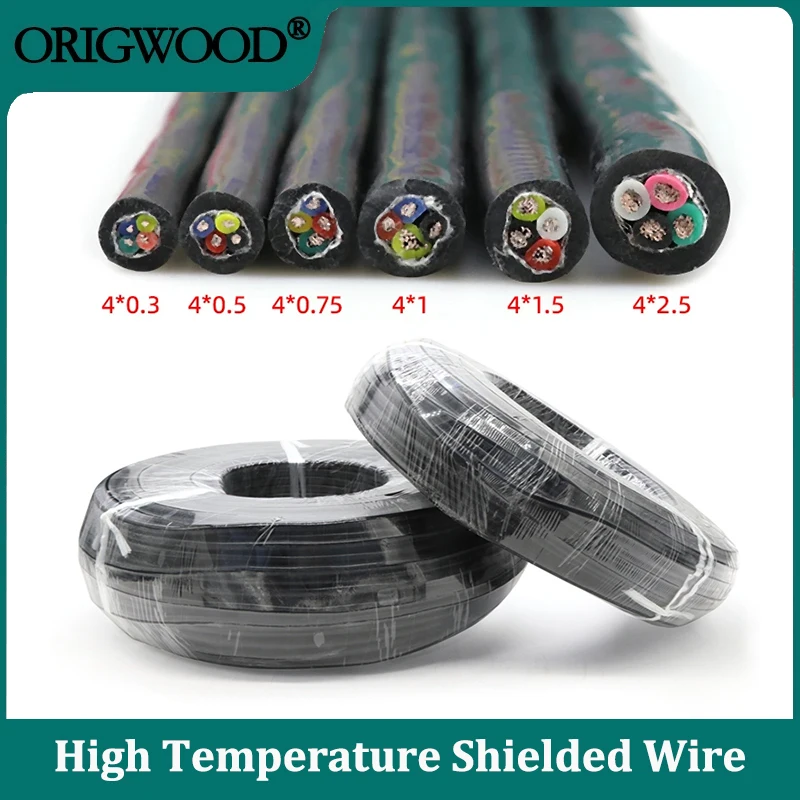 1/5/10M High Temperature Shielded Wire Sq 0.3/0.5/0.75/1/1.5/2.5mm ...