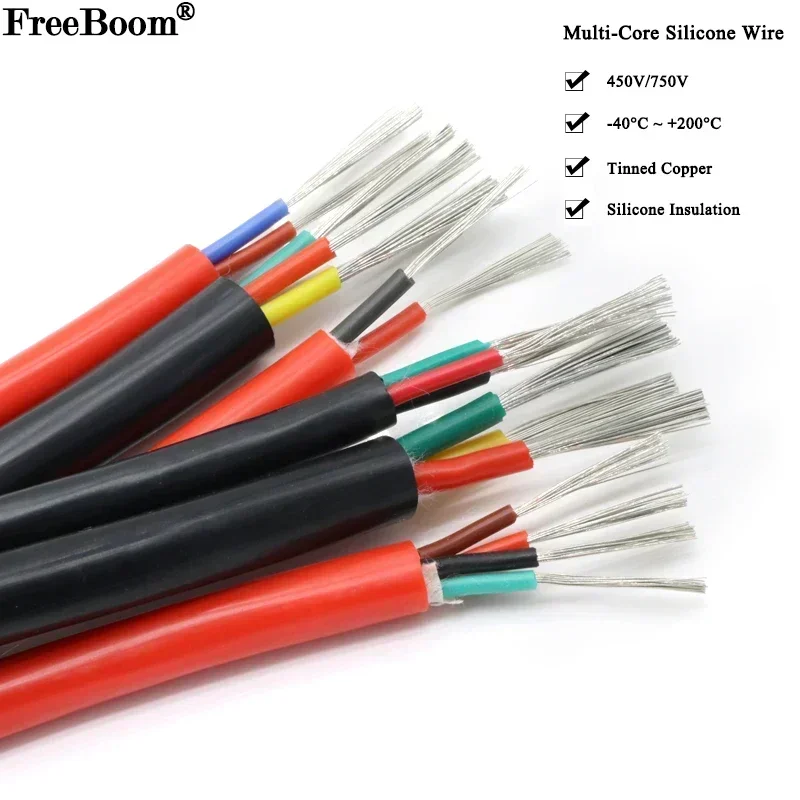 1~10M Silicone Rubber Cable Sq 0.3 0.5 0.75 1 1.5 2 4mm 2 3 4 6 Cores Flexible Insulated Copper High...