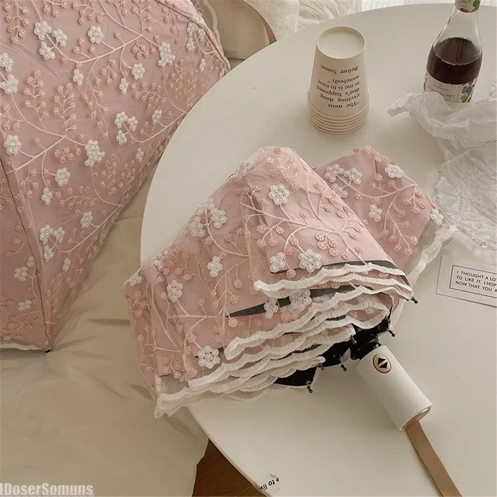 Full-automatic Lace Sun Umbrella 2 Layers Embroidery Sunshade Anti-ultraviolet Folding Umbrella Rain...