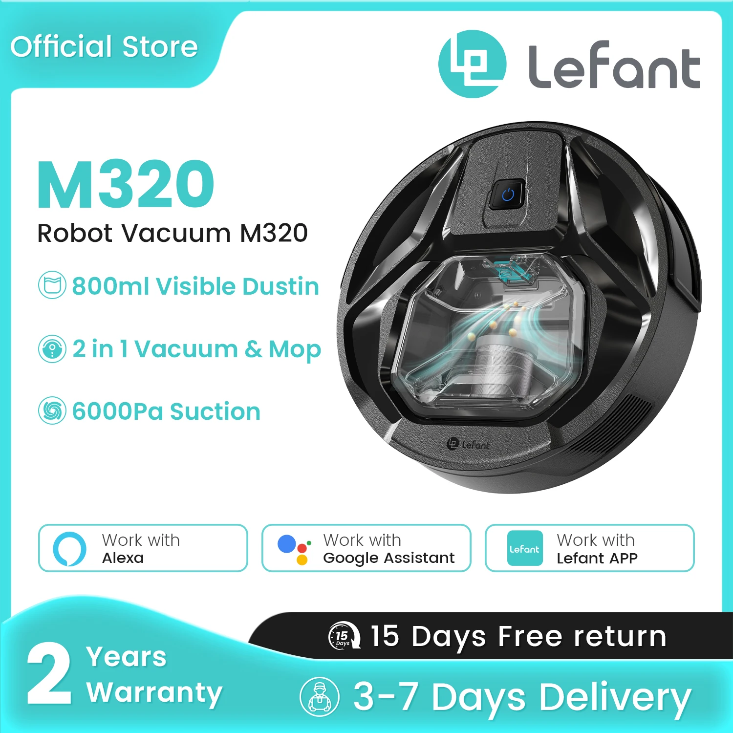 Lefant M320 cordless Robot Vacuum Cleaner and mop, 6000Pa ,210 Mins Runtime,Self-Charging,Ideal for ...