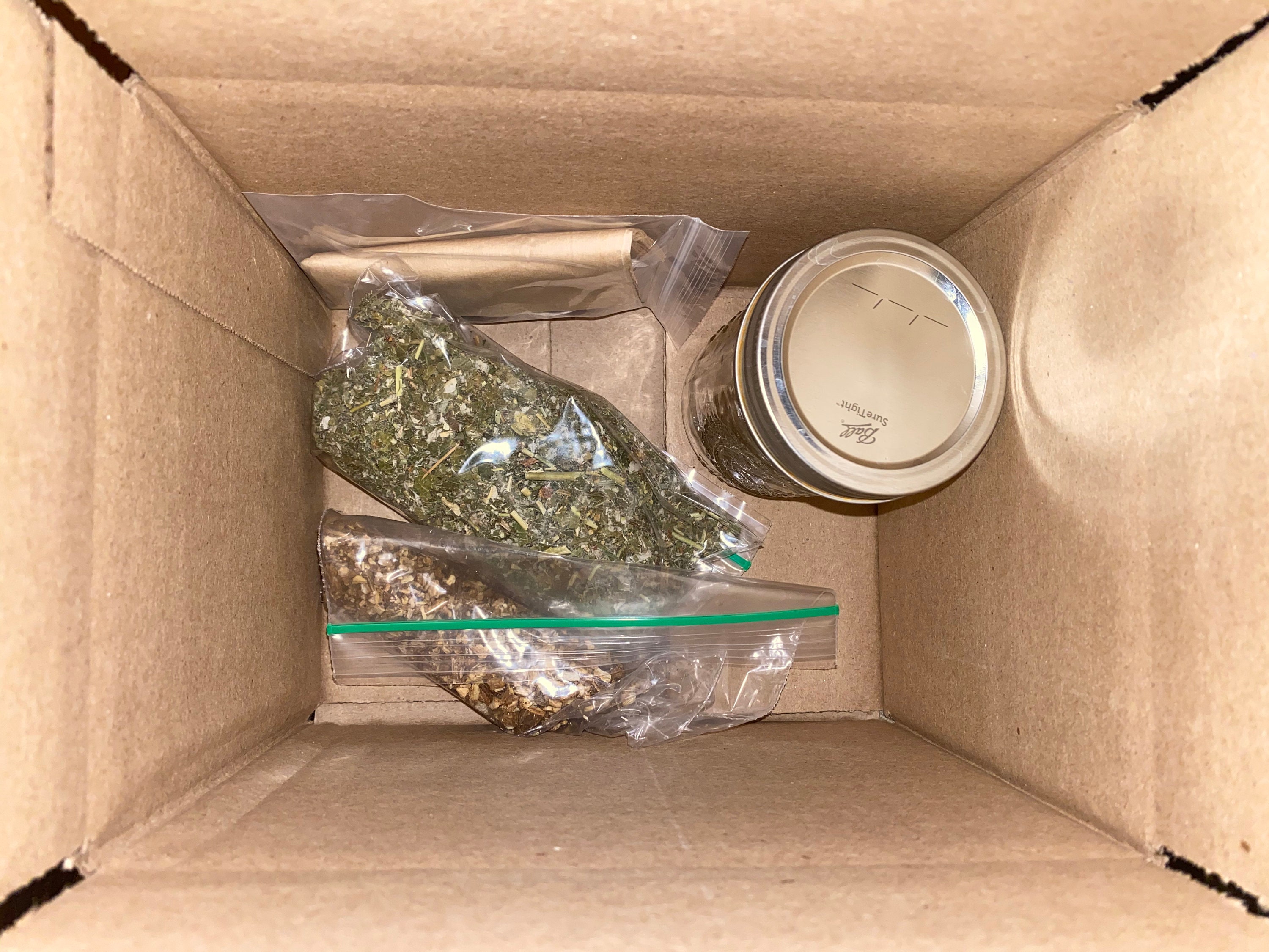 16 oz of Seamoss gel, 2 oz of burdock root, 1 oz of Red Raspberry Leaf, 4 disposable tea bags