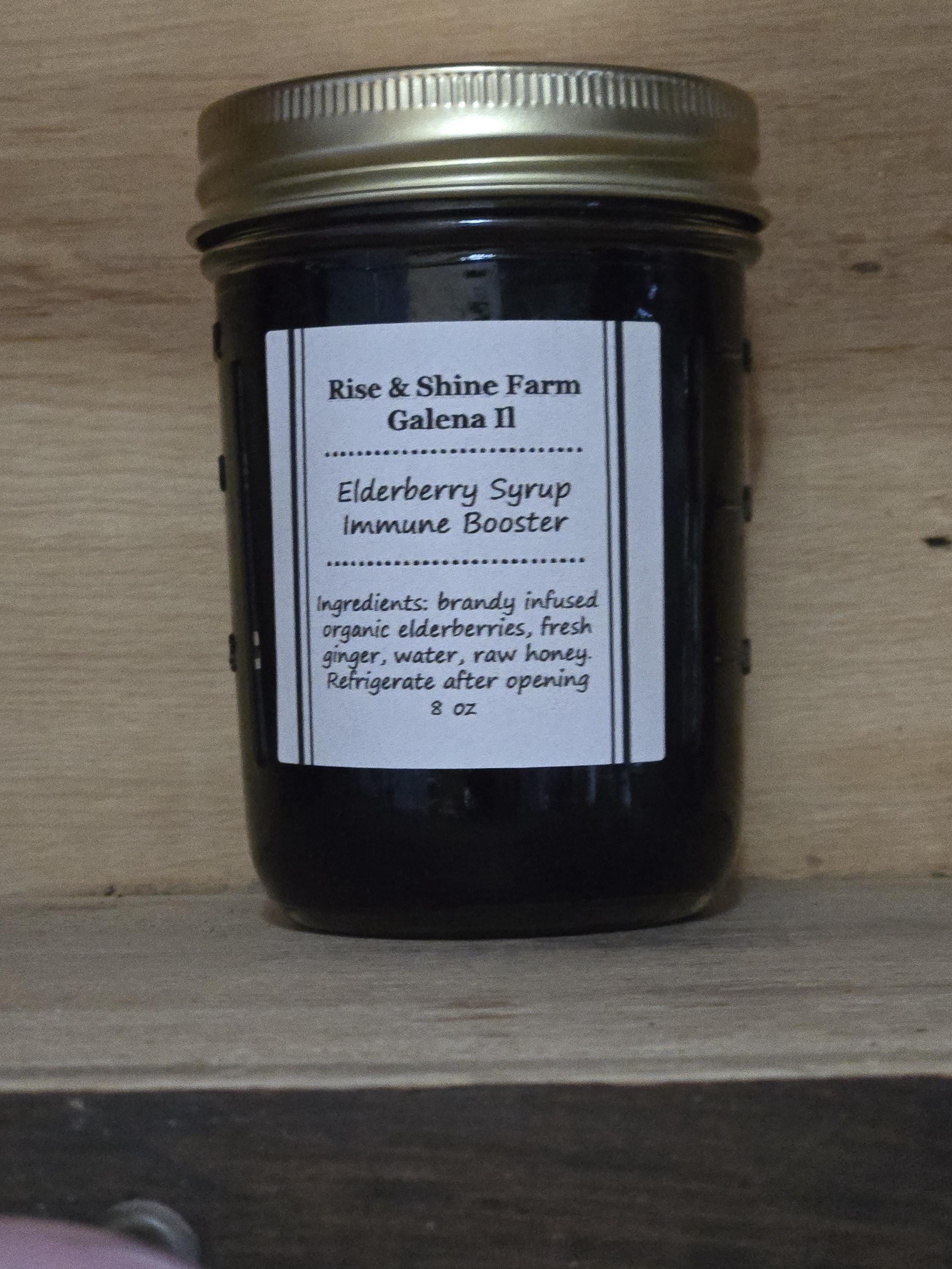 8 oz jar of homemade elderberry syrup. I use a 2 step process for this to make it shelf stable for a...