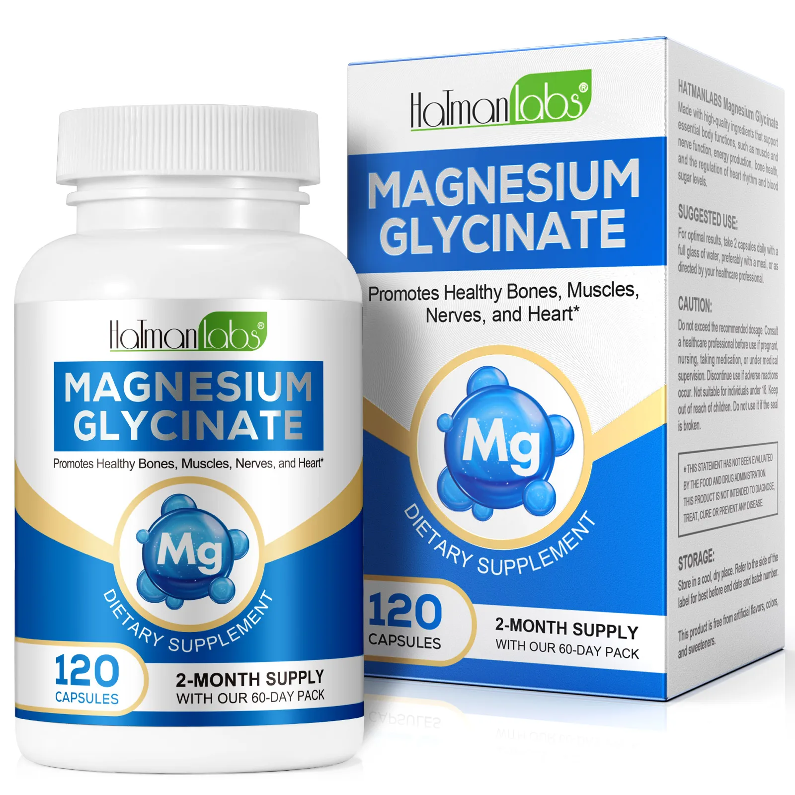 Hatmanlabs 120 Capsules Supports Bone Muscle Nerve Heart Health Mag...