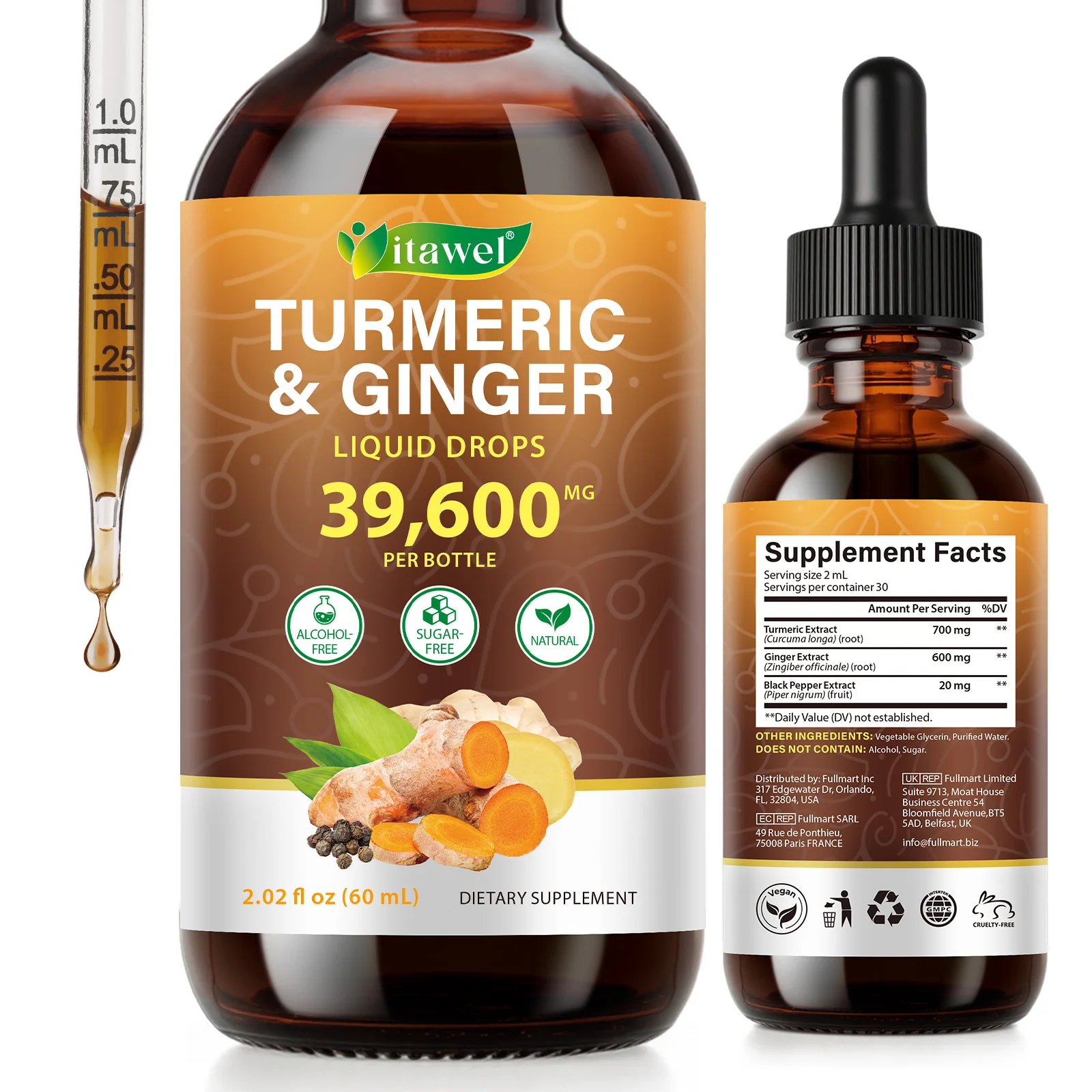 Itawel Mobility Joint Support Turmeric Drops Alcohol Sugar Free Nat...