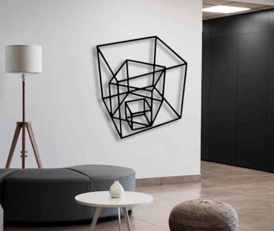 cube in cube metal Wall art, Geometric Metal Wall art, 3d cube meta...