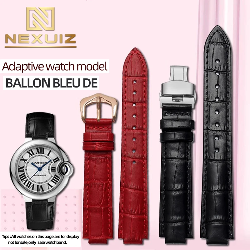 Leather Watch Band For BALLON BLEU DE CARTIER Watchstrap Women and Men Watch Convex Joint Bracelet 1...