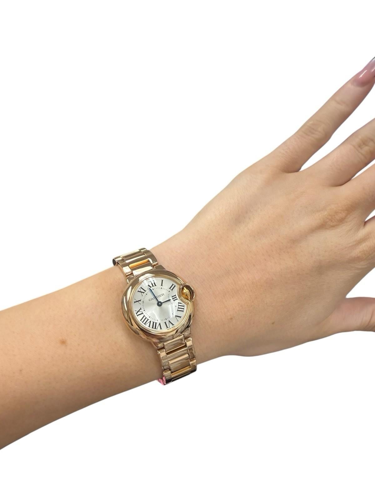 "The Cartier Ballon Bleu 28mm 18k Rose Gold Ladies Quartz Watch W69002Z2 3007 is a luxurious an...