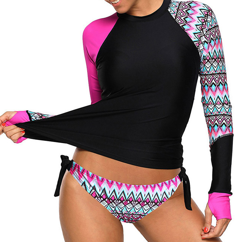 Women's Rash guard Swimsuit Two Piece Swimsuit Patchwork Printed Qu...