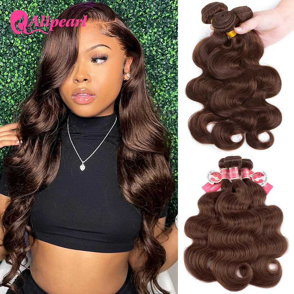 Ali Pearl Hair Chocolate Brown Human Hair Bundles #4 Body Wave Hair Weaving Brazilain Brown Color Ha...