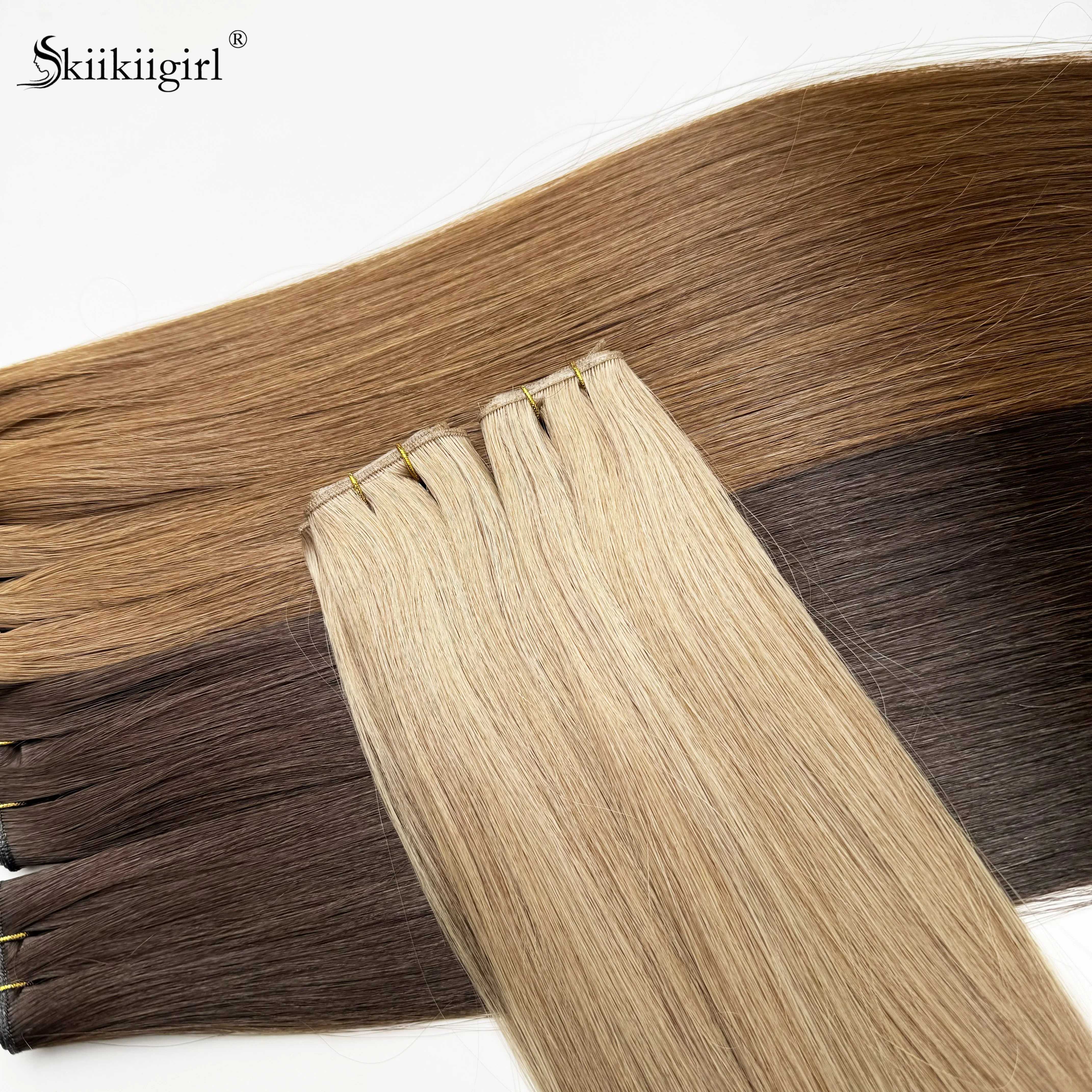 Moresoo Genius Weft Hair Extensions Human Hair Balayage Remy Hand Tied Sew in Hair Extensions Real H...
