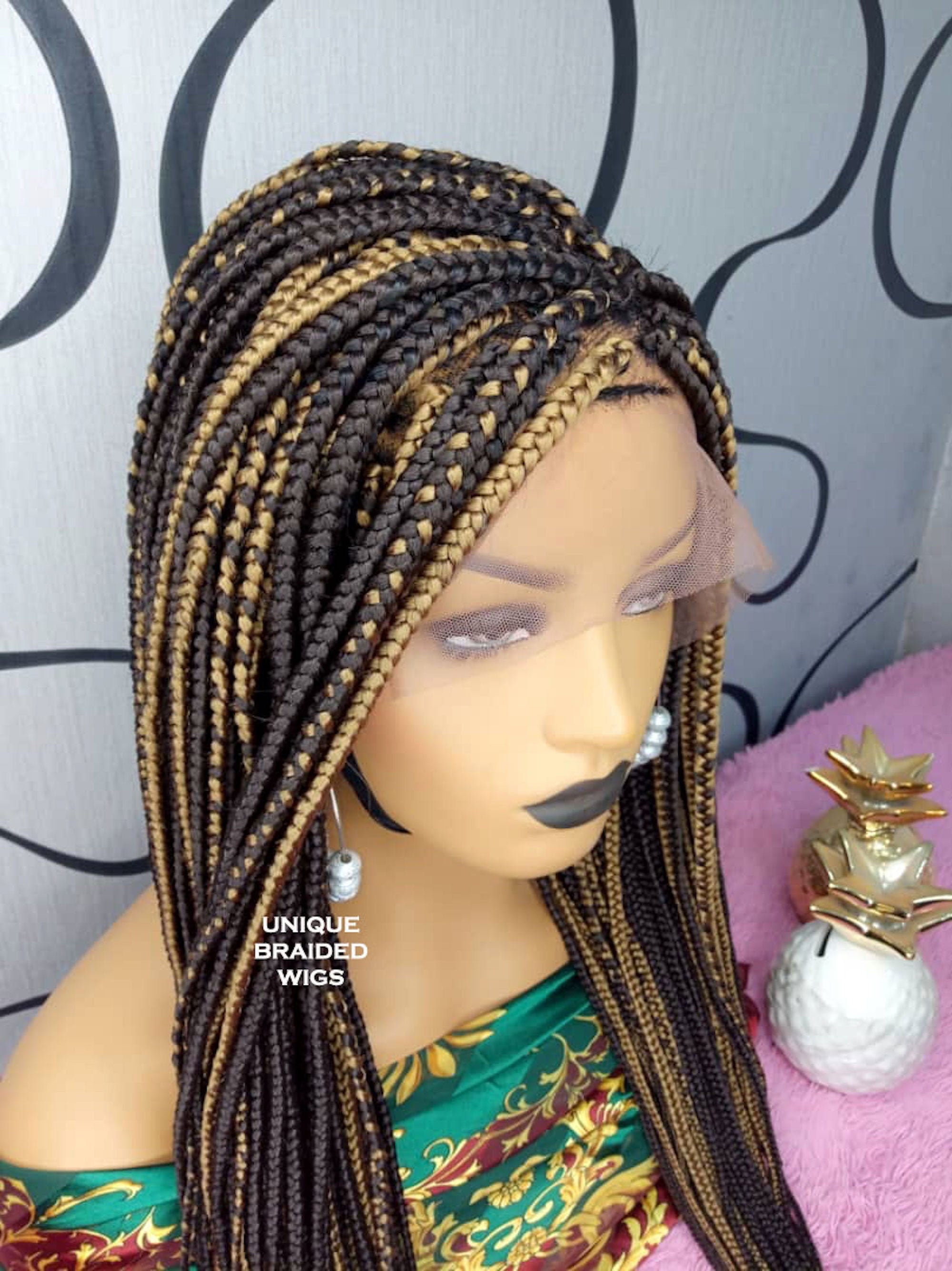 This is a custom made to order medium box braided wig. Unit is meticiously handcrafted to attain a b...